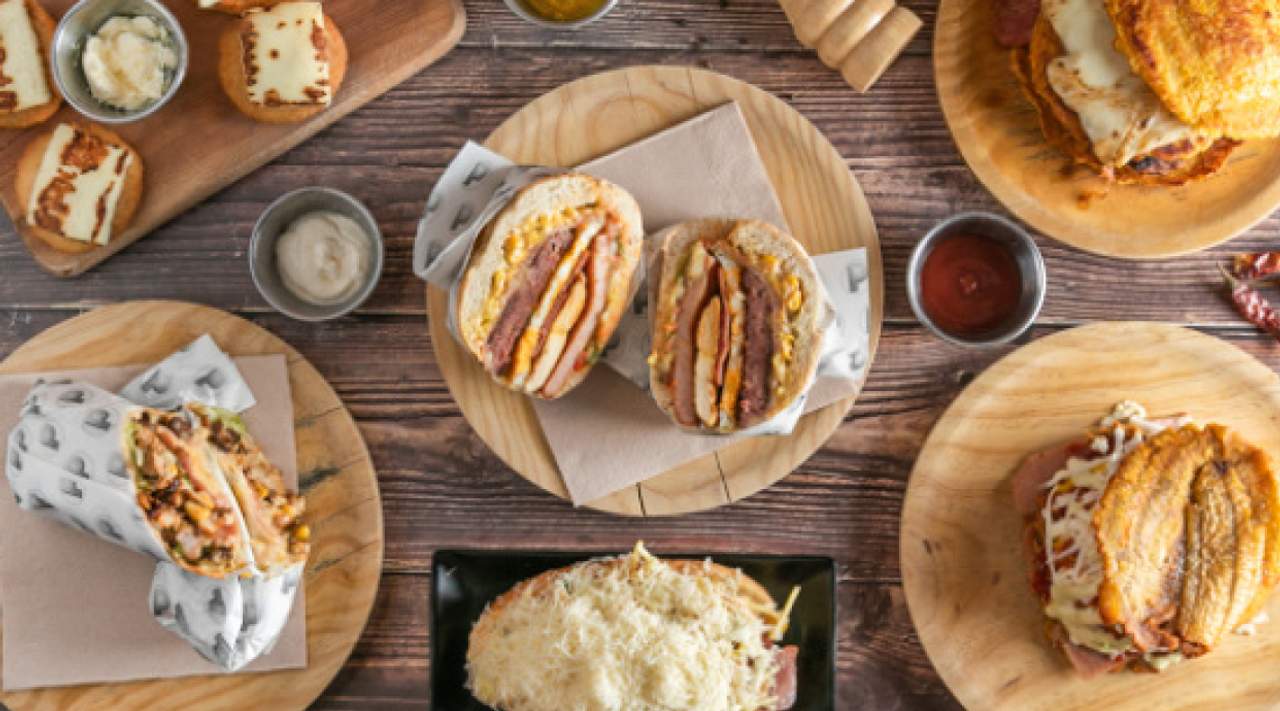 Tapa de platano verde, queso gouda, jamon york, (ternera, pollo o mixto) ensalada de repollo, queso llanero, ketchup, mayonesa, mostaza y nuestra incondicional salsa de Ajo.