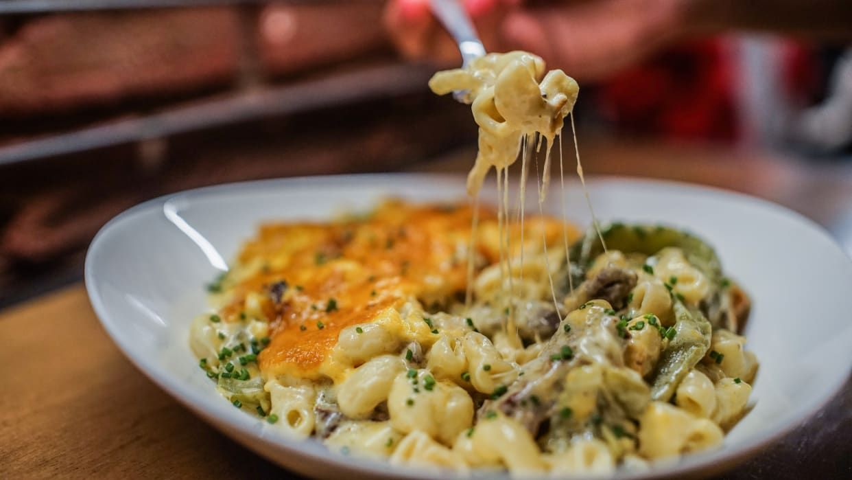 Tus macarrones con pollo al grill y nuestra legendaria salsa buffalo / Mixed with grilled chicken and our legendary buffalo sauce!
