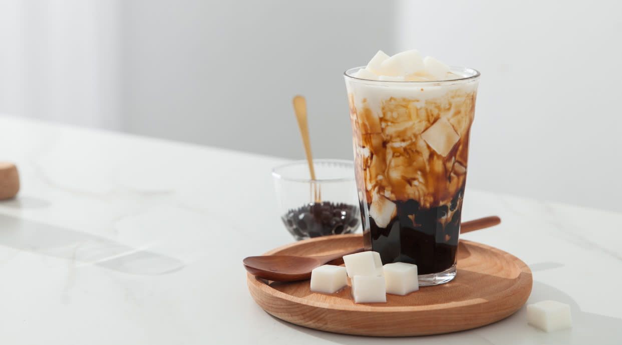 Bubble tea con té verde de jazmín y gelatina de leche.
