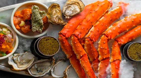 Salmón fresco, cebolla tierna , huevas de trucha, salsa Ponzu, salsa Teriyaki, vodka, erizo de mar y jengibre fresco