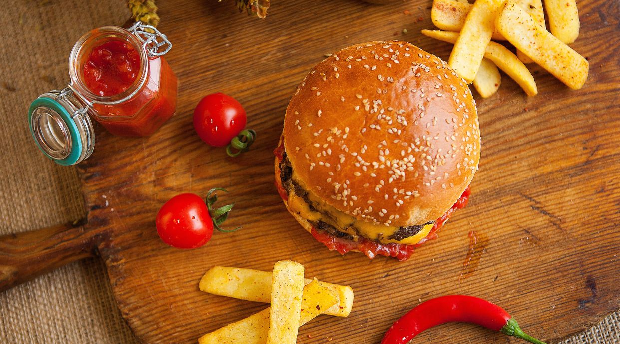 Carne ternera 150 g., queso, pepino y cebolla caramelizado