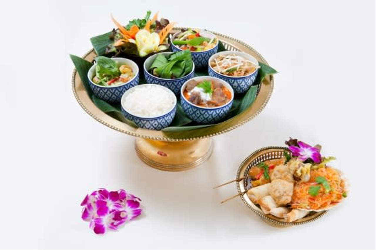 Surtido de cinco entrantes y ensalada Yam Won Sen del Menu Cláscio