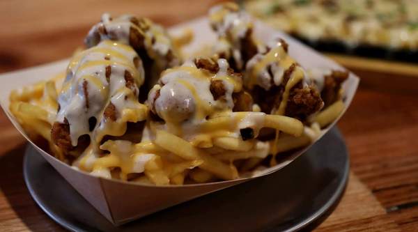 Maiz tierno salteado, queso costeño, patata paja y salsa tartara