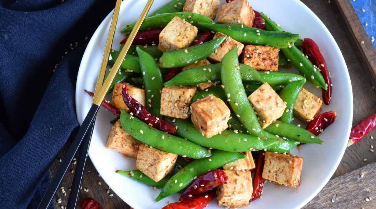 Tofu al estilo gongbao, vegano