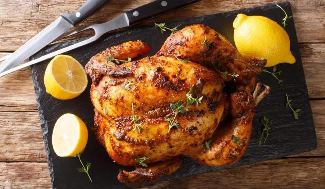 2 Pollo A L'Ast Entero Con Patatas Y Ensalada Hawaiana