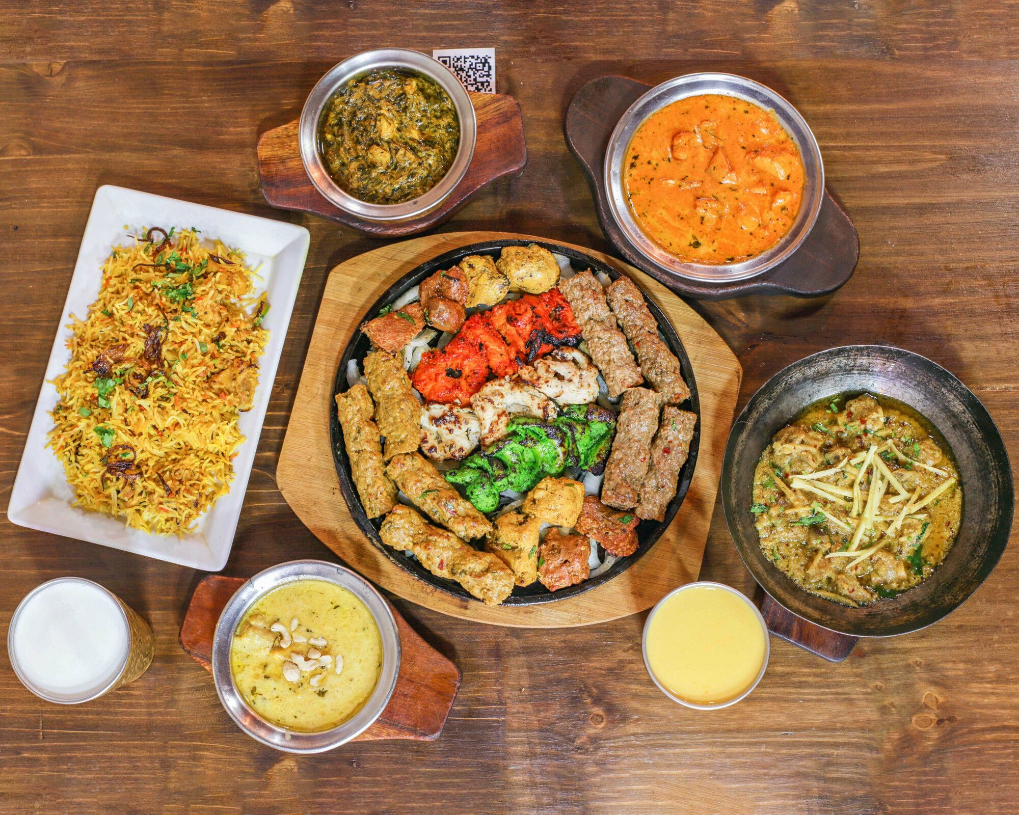 1/4 chicken/pollo leg piece, 1 chicken/pollo kebab ,1 beef/ternera kebab,4 piece chicken/pollo tikka, 4 piece mutton/cordero tikka