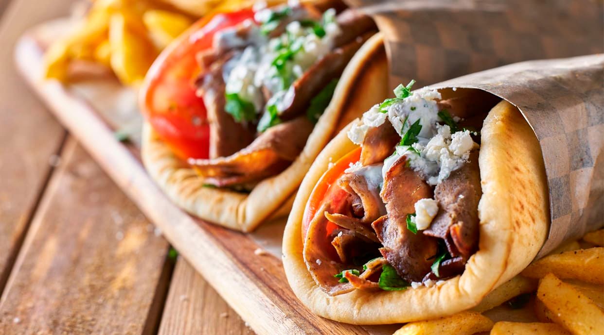 Pollo con cordero, ensalada mixta y salsas especiales en pan de pita