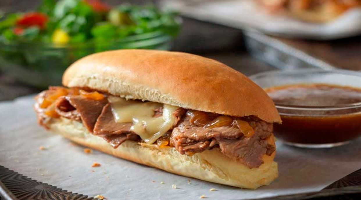Carne, queso, lechuga, tomate y cebolla pochada