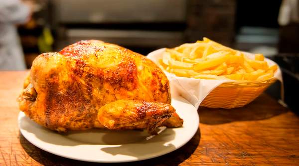 3 Pollos a last, croquetas (12 uds.), patatas al caliu (12 uds.), alioli (3 uds.), ensaladilla rusa1 ,pan (2 uds.) Cava