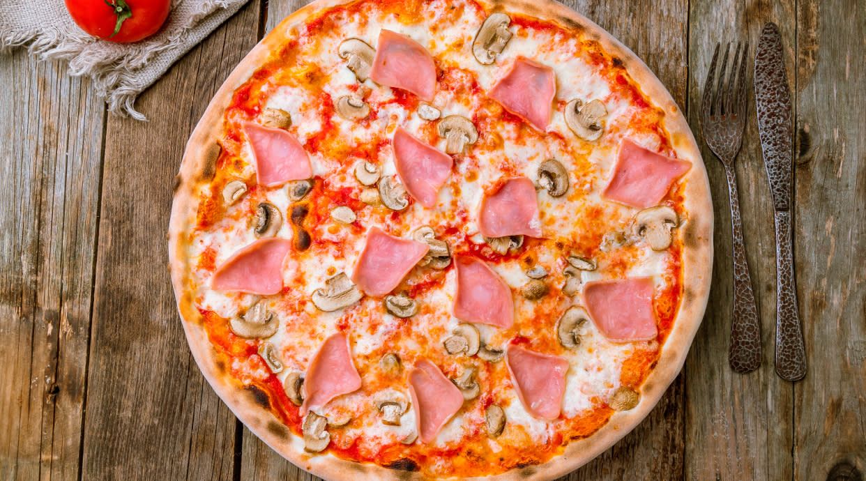 Tomate, mozzarella, jamón York y champiñones