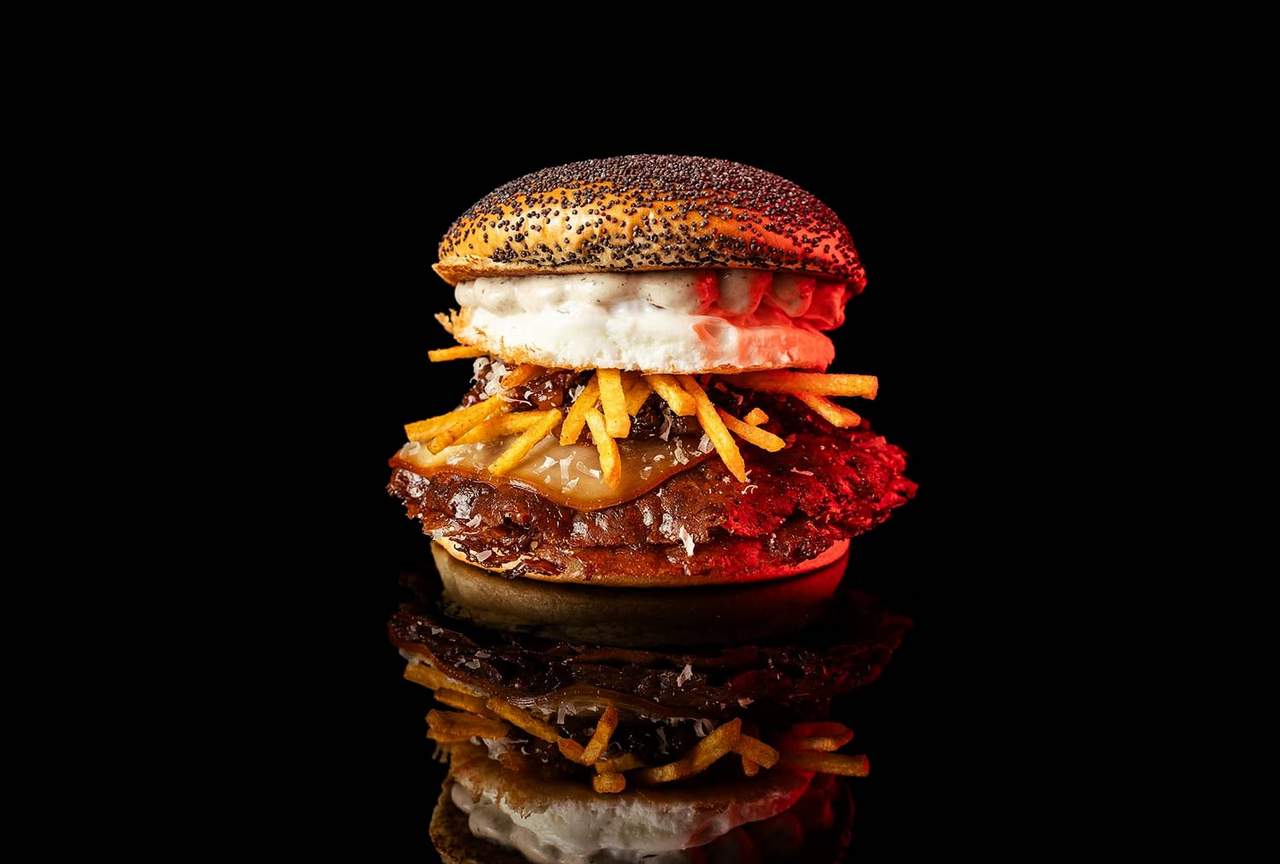 Doble smash de chuletón, doble queso cheddar belga, bacon ahumado y cremosa salsa mayo trufa