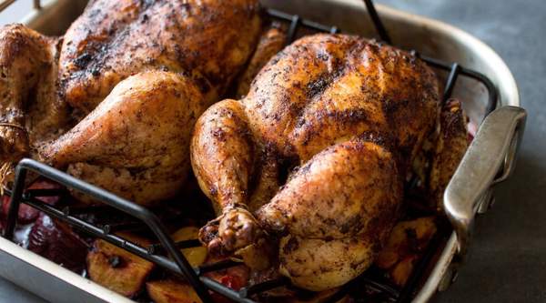 2 pollos, patatas fritas, ensalada a elegir, ajo y 2 barras de pan