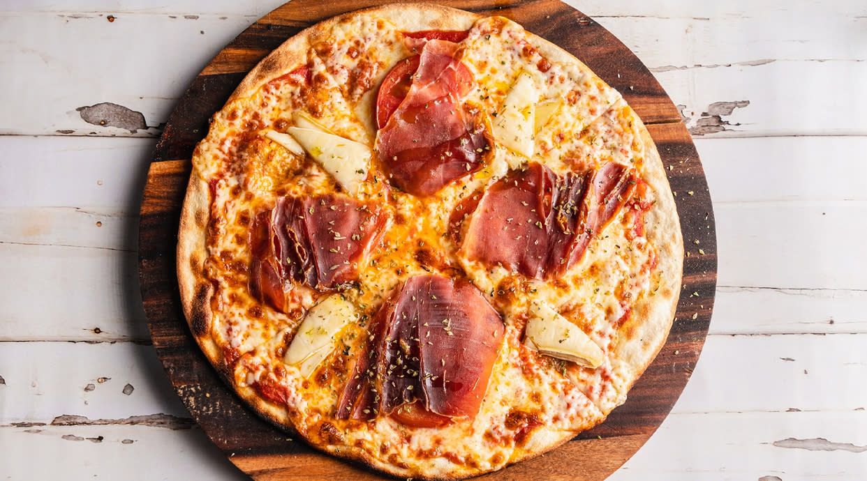 Tomate, mozzarella, York, aceitunas negras, alcachofas, champiñones y anchoas