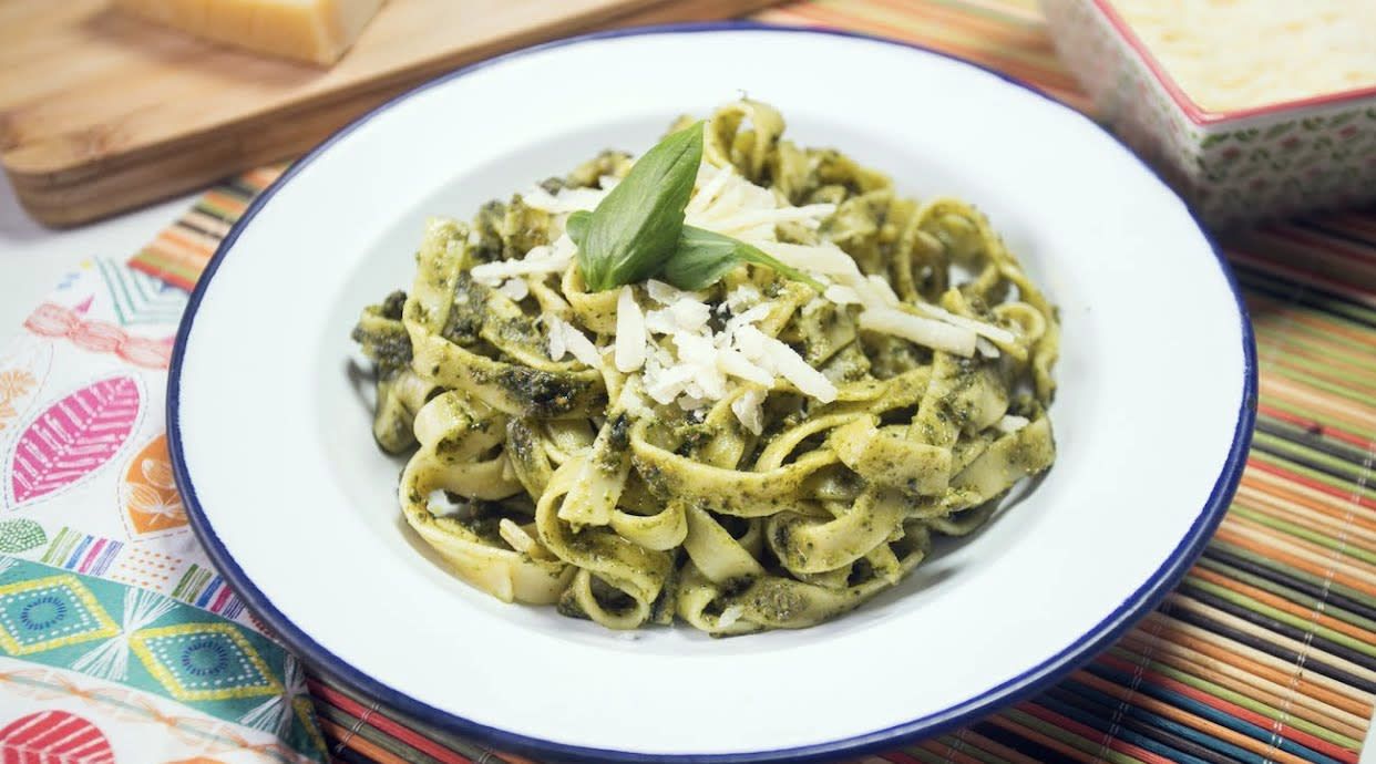 Mozzarella, calabacín, anchoas, cherry y pesto
