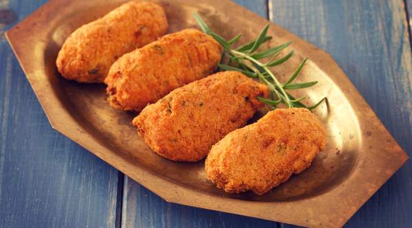 Patatas cortadas en dados, fritas y aderezadas con salsa brava