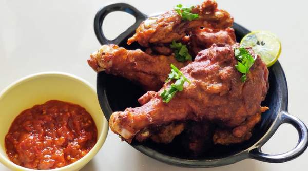 Pechuga de pollo preparado en salsa de cebolla, tomate, patata y cilantro fresco, muy picante