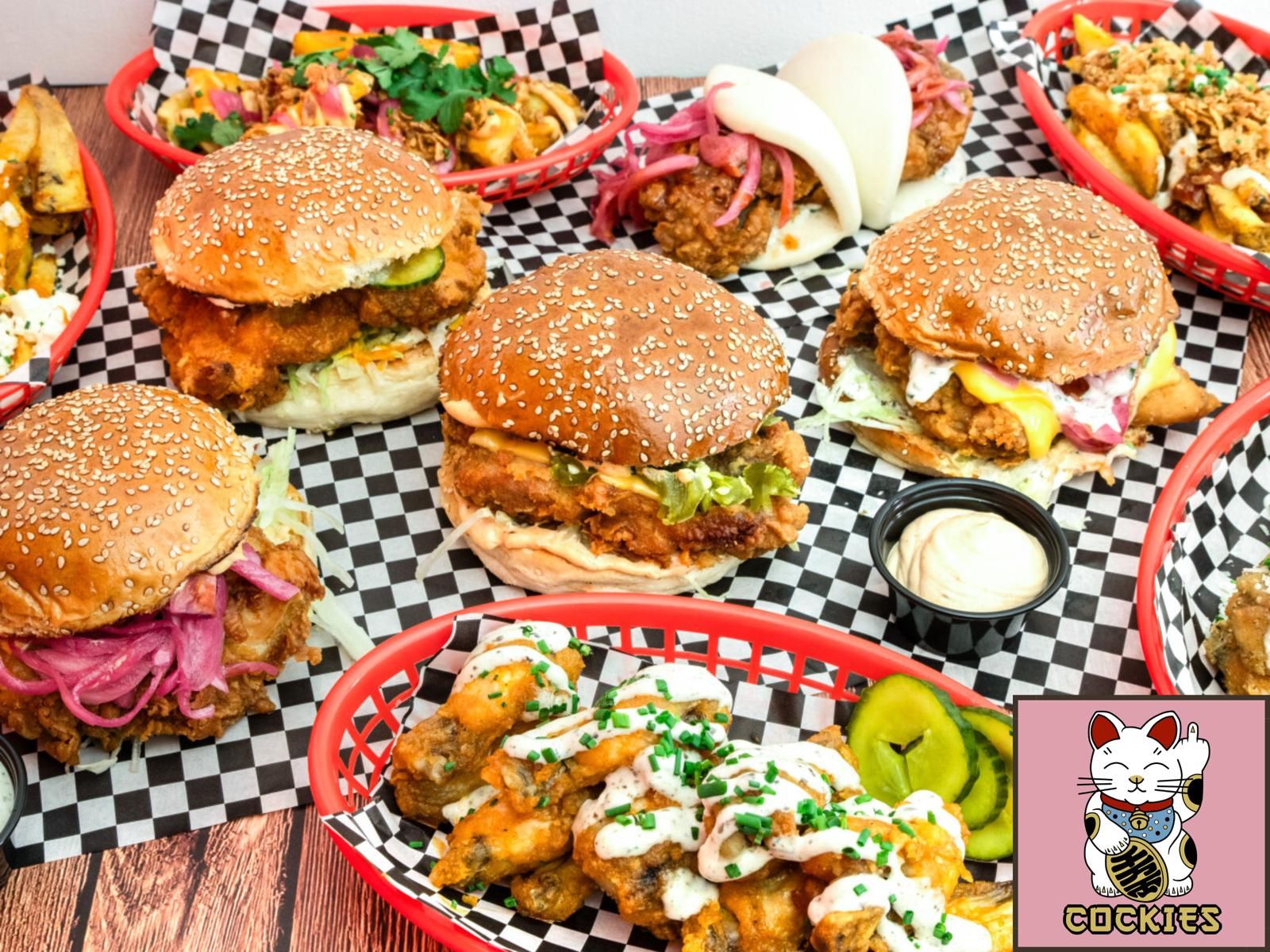 Pollo crujiente estilo americano con cebolla roja encurtida casera, mayonesa de sambal con nuestra salsa secreta coreana servido en pan brioche Picante : 4 , sin Korean hot sauce 2