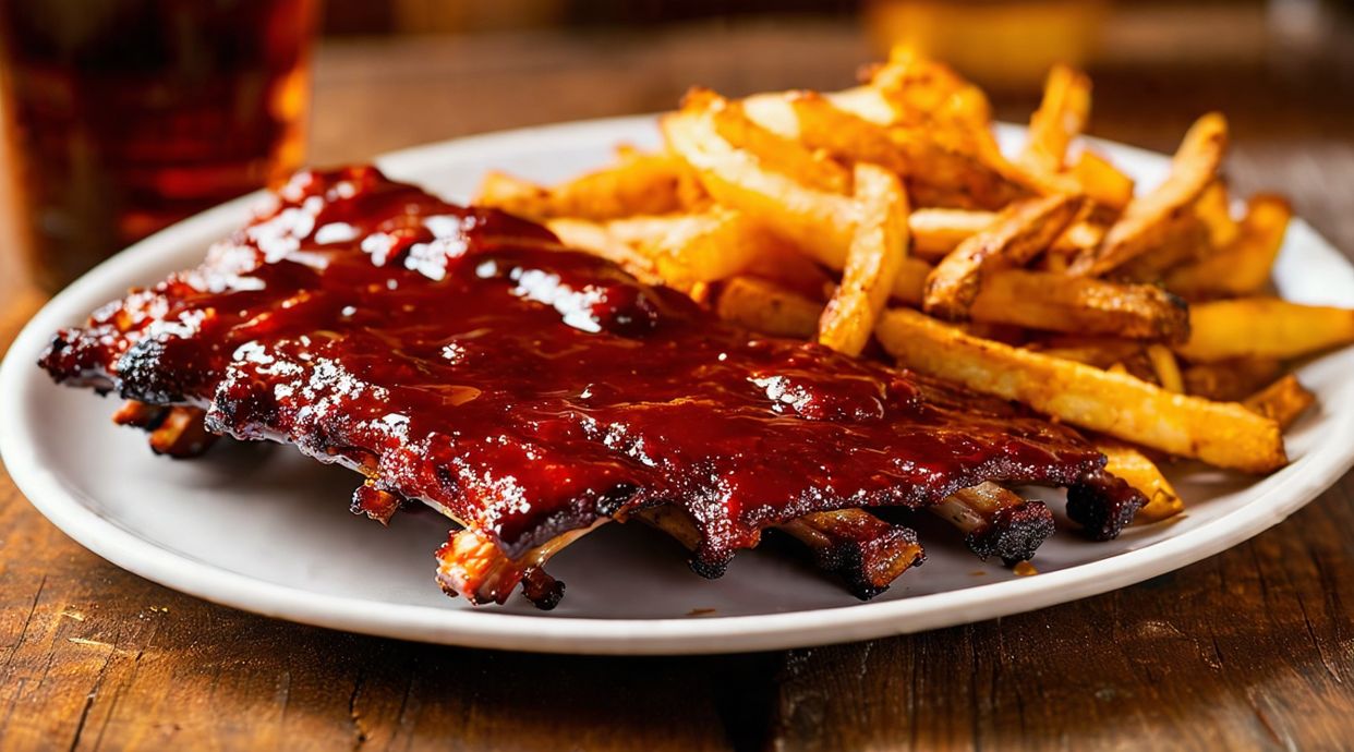 Costillar de cerdo, mostaza, miel, vinagre de manzana, sal, pimienta y aceite