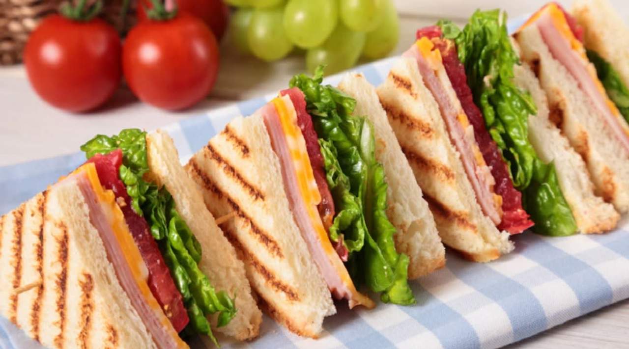 Jamón, bacon, huevo, queso cheddar, aguacate, mayonesa, kétchup y mostaza