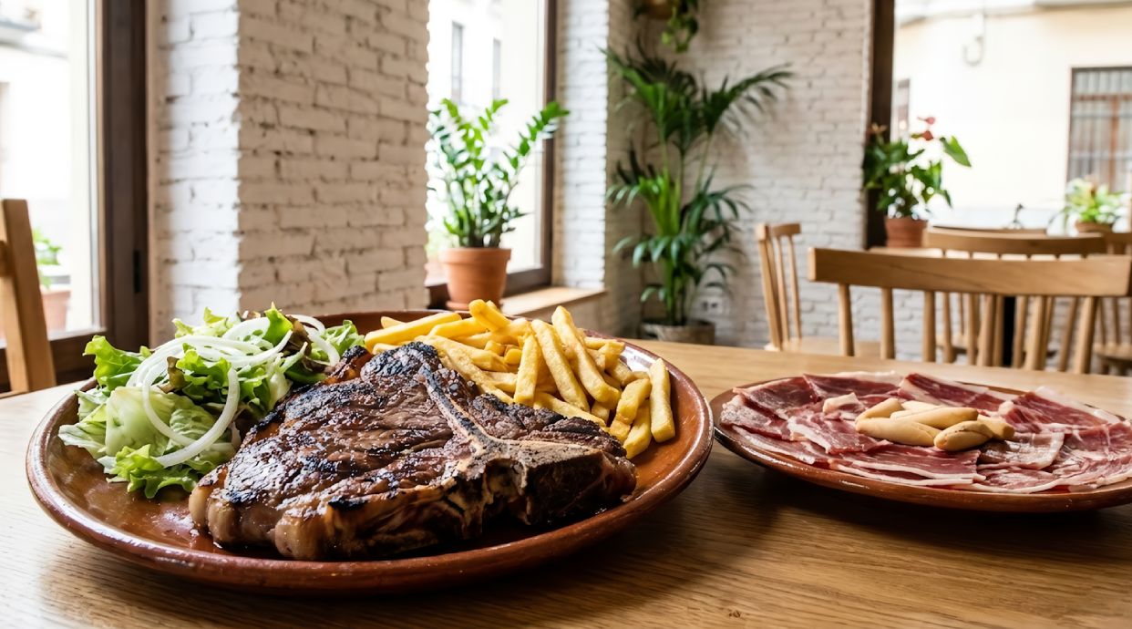 Chuletón de ternera a la parrilla, jugoso y tierno, con un sabor intenso y delicioso.
