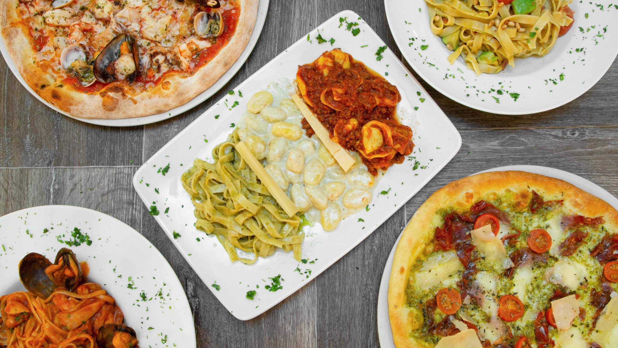 Tres de nuestras pastas con sus respectivas salsas, (tortellini a la boloñesa, gñocchi a los 4 quesos y fetuchini al pesto genoveses)