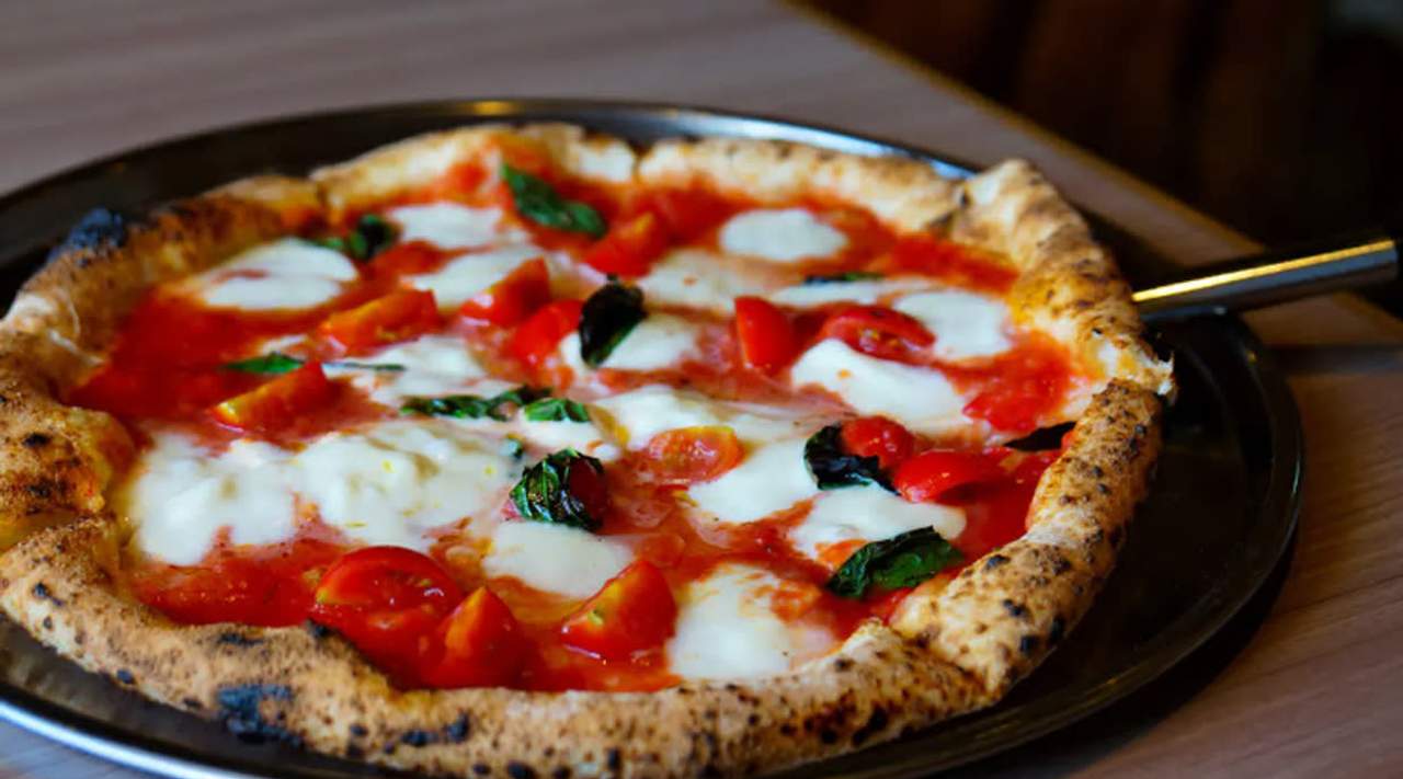 Base de tomate, ajo, perejil, mozzarella, parmesano, albahaca, tomate cherry, aceite de oliva y orégano