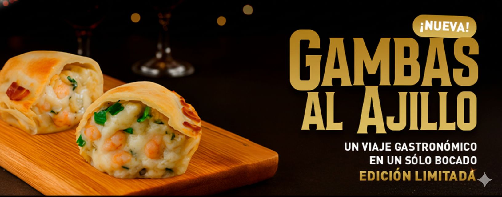 Empanada rellena de pollo, bechamel, jamón York, bacon crispy y cebolla caramelizada