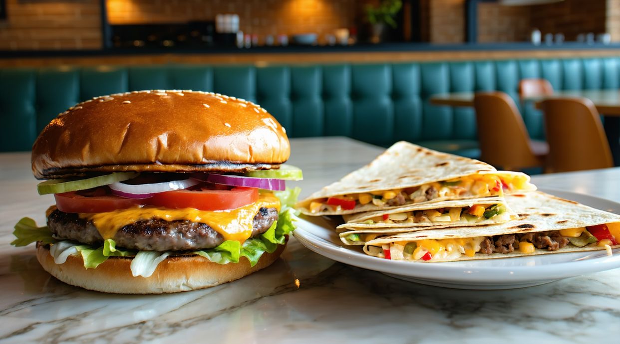 Pan brioche, (120 g.) de vaca madurada, queso de cabra, jamón ibérico, brotes tiernos, salsa tomate chutney y queso crema