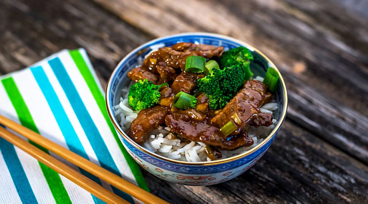 Carne de cerdo rebozada, cubierta con una salsa agridulce y colorida