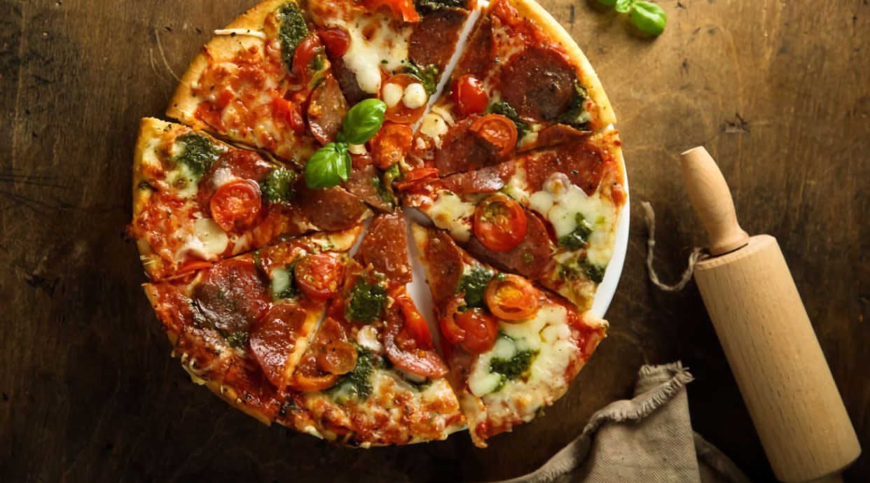 Tomate, aceite Evo, mozzarella, albahaca, salami picante