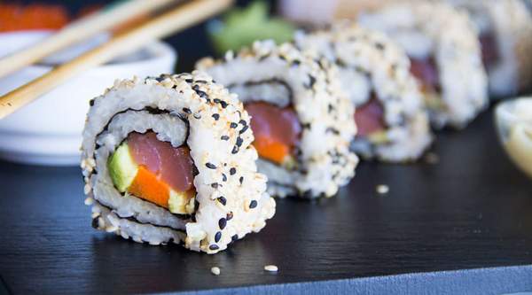 sushi salmon,atun,pez mantequilla y 6 maki atun