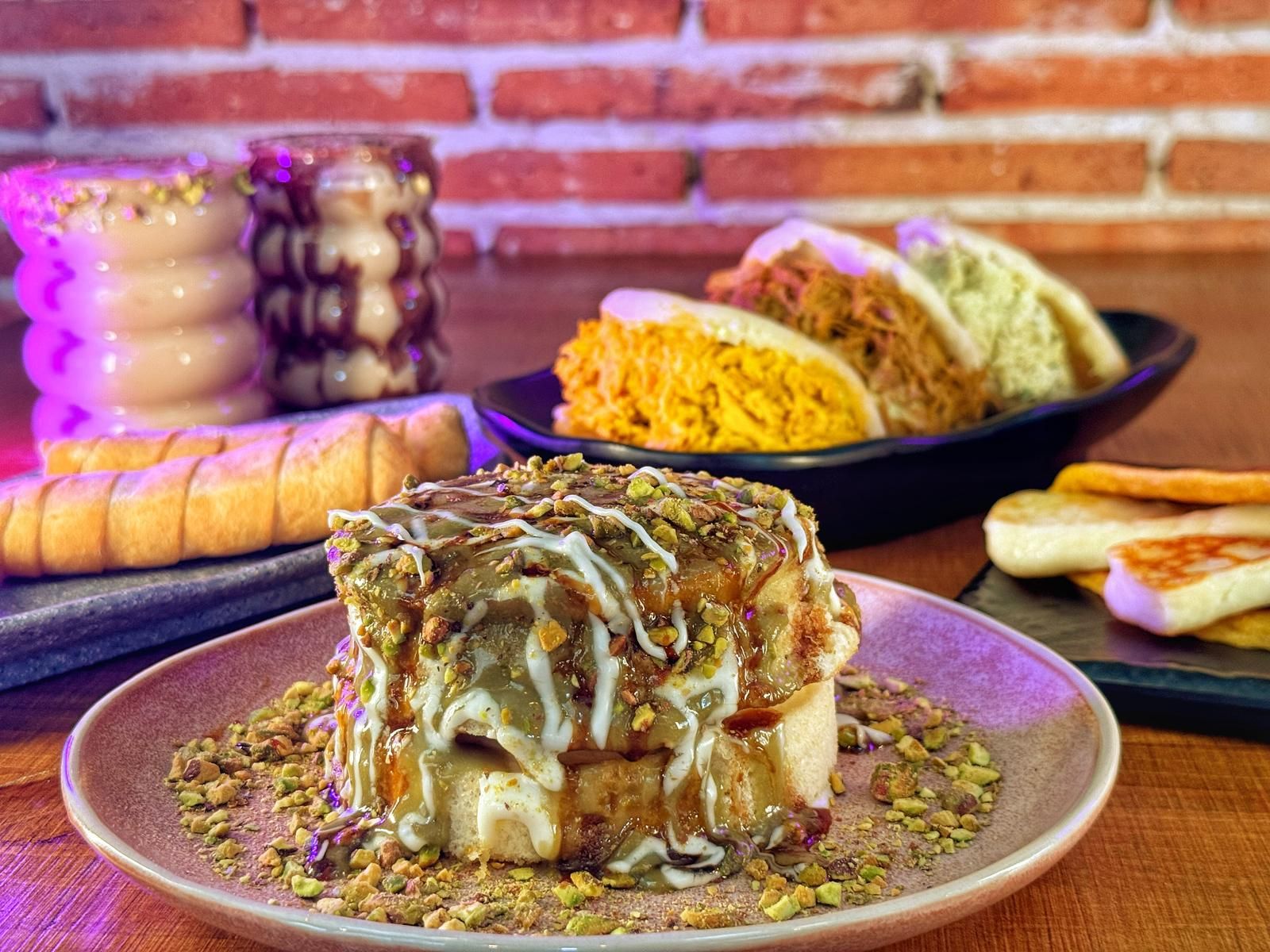 Arepa de harina de maiz precocido 100% artesanal, hechas a la plancha, rellenas de carne deshilachada, acompañada de salsa tartara de la casa