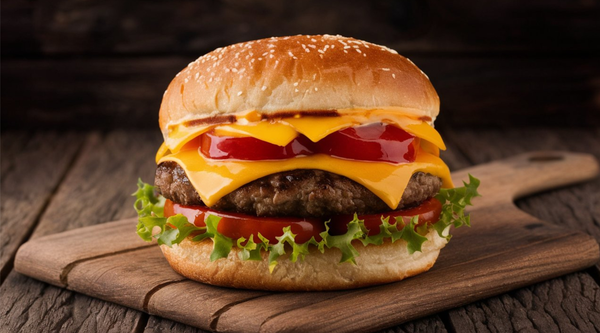 Ternera, lechuga, doble ración de queso, queso cheddar y explosión de queso( Jeringuilla de cheddar) Incluye patatas