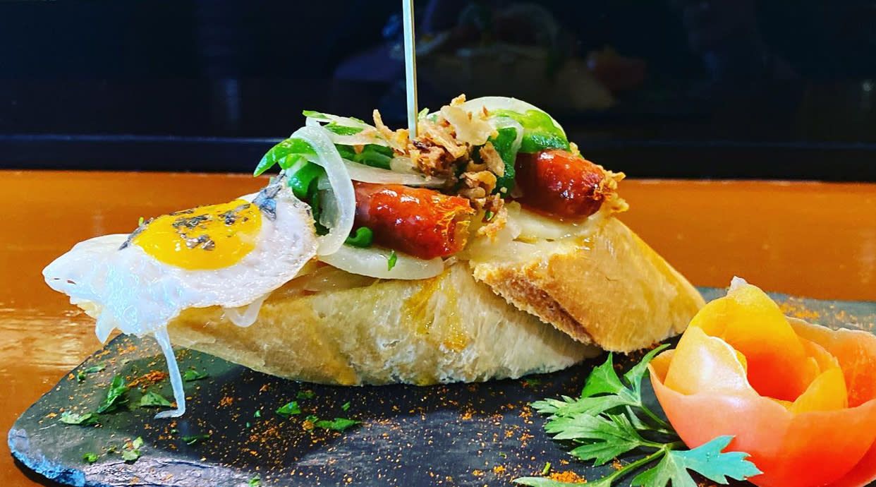 Torrada Lomo,Bacon,Padrón y Cebolla