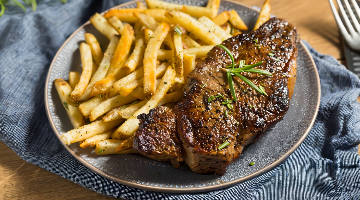 Lomo tierno acompañado de patatas fritas