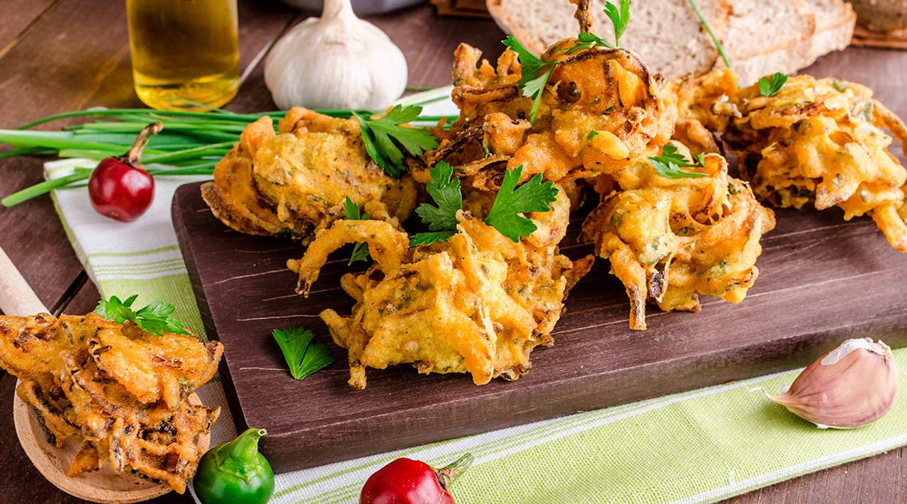 Fritura de cebolla rebozada con harina de garbanzo y especias