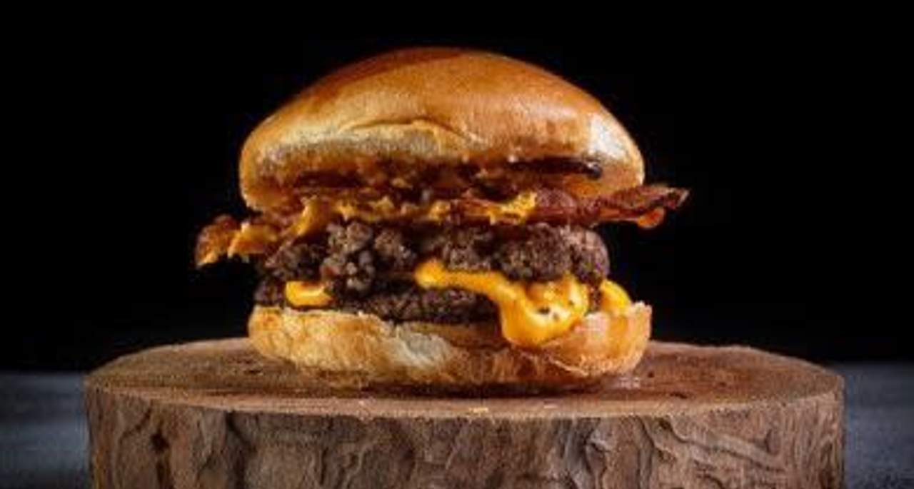 Doble smash burger ternera, bacon, doble queso cheddar, cebolla a la plancha y salsa mayonesa especial con pan brioche
