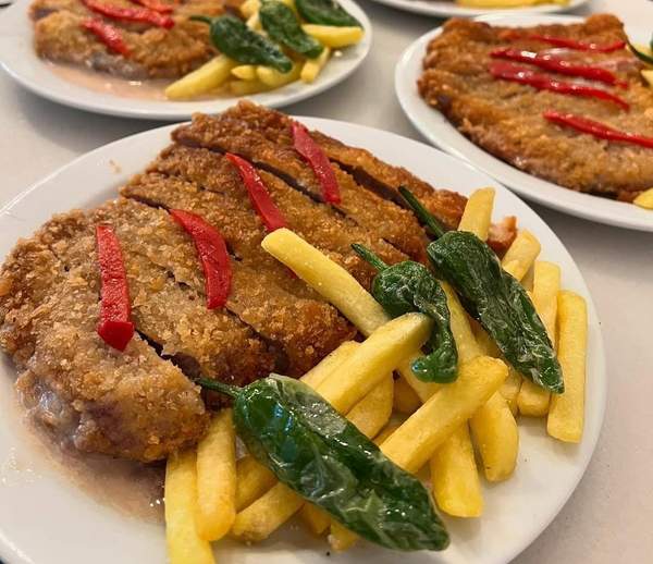 Plátano macho verde frito aplastado, A elegir entre ternera o pollo