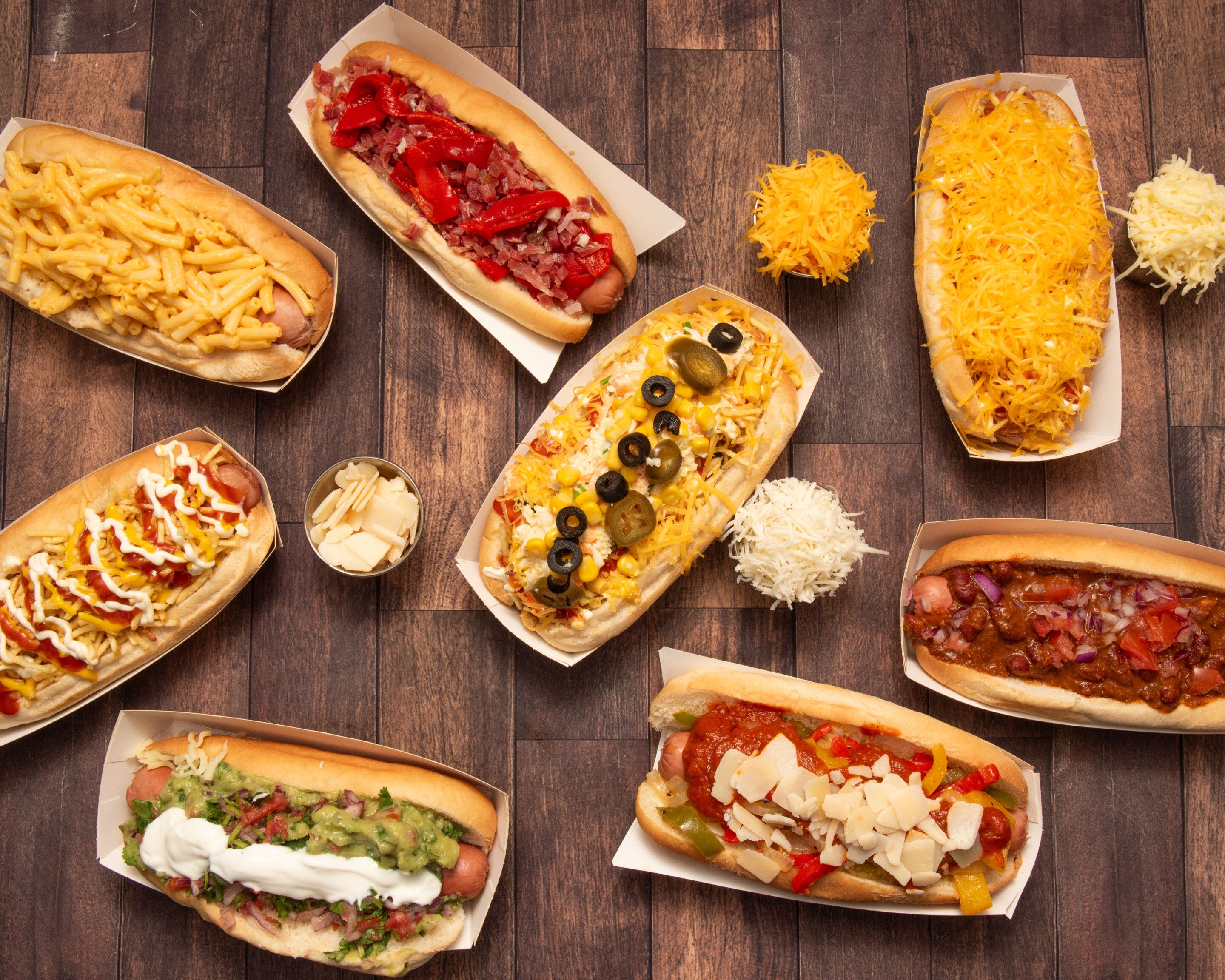 Salchicha 100% vacuno, de 120 g y 20 cm, servida en pan gourmet. Acompáñala con hasta 12 toppings sin coste adicional, y además elije entre más de 40 salsas incluidas en el precio. Con todos los toppings tu hot dog puede alcanzar 450 g de puro sabor.