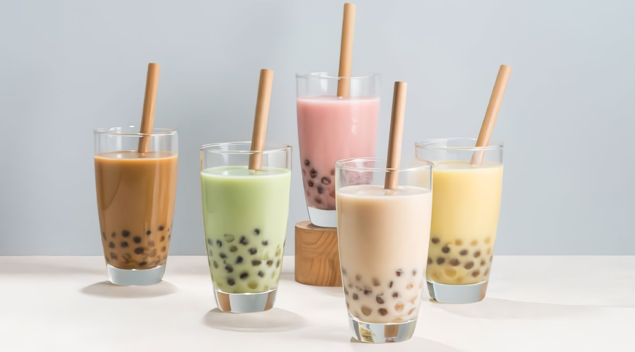 Té con leche con popping de su gusto (fresa, litchi, maracuyá, melocotón,uva y/o arándano)