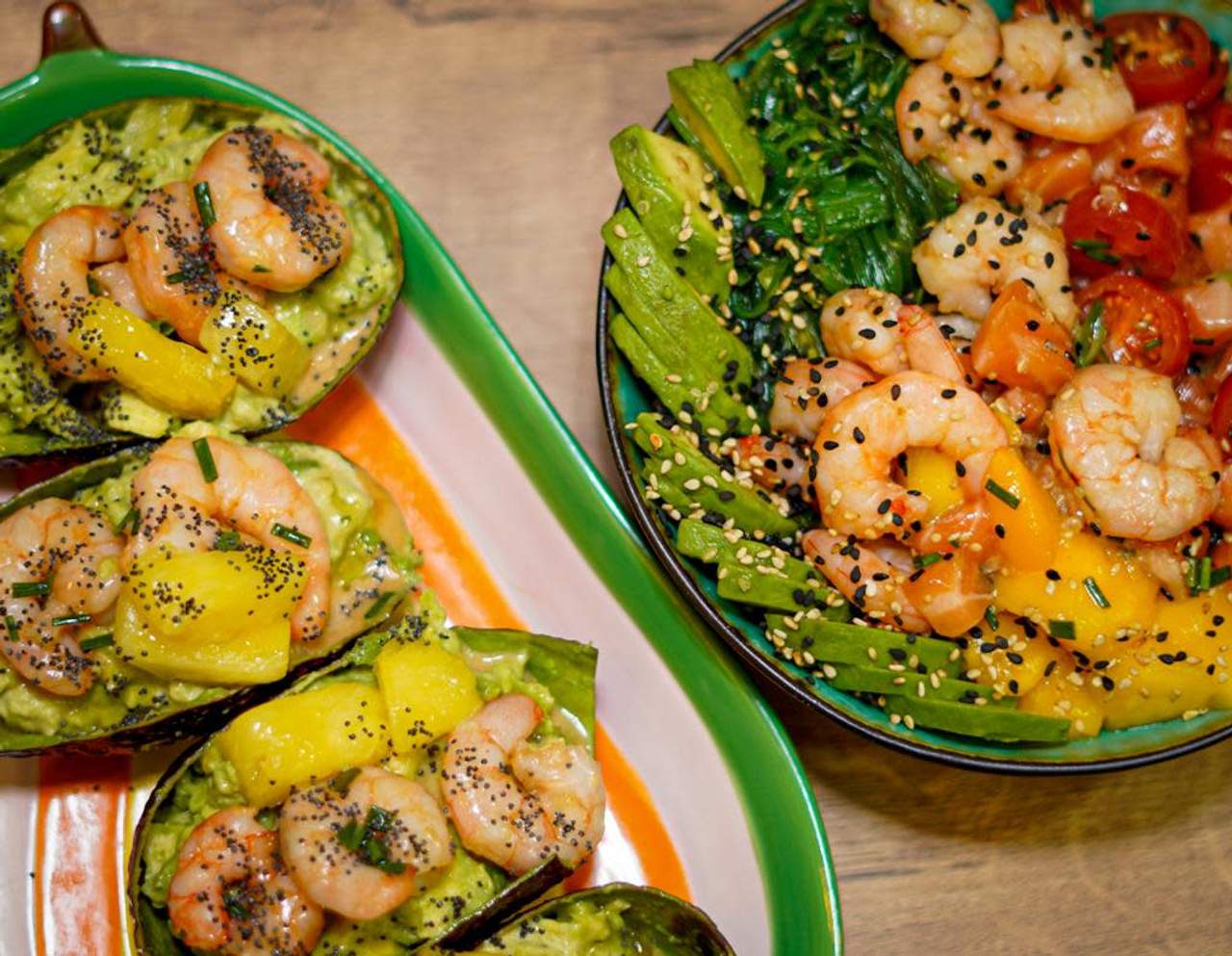 AGUACATES RELLENOS DE PIÑA Y SPICY LANGOSTINO