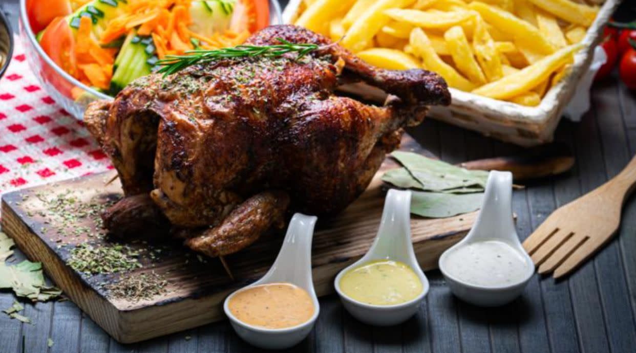 1 Pollo Solo tamaño Mediano Al Carbón + 3 salsas