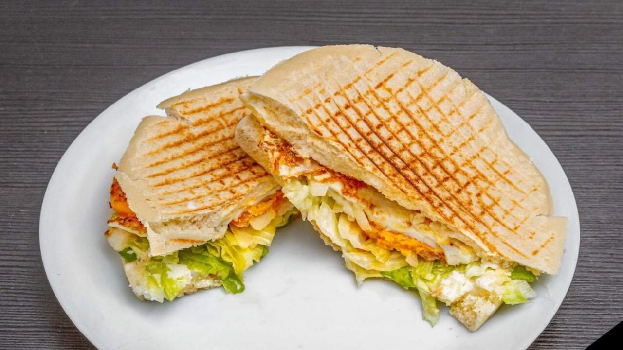 Jamón serrano, pollo asado, huevo, pimiento y mayonesa.