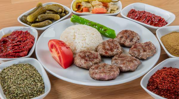 Spiced grilled meatballs with rice