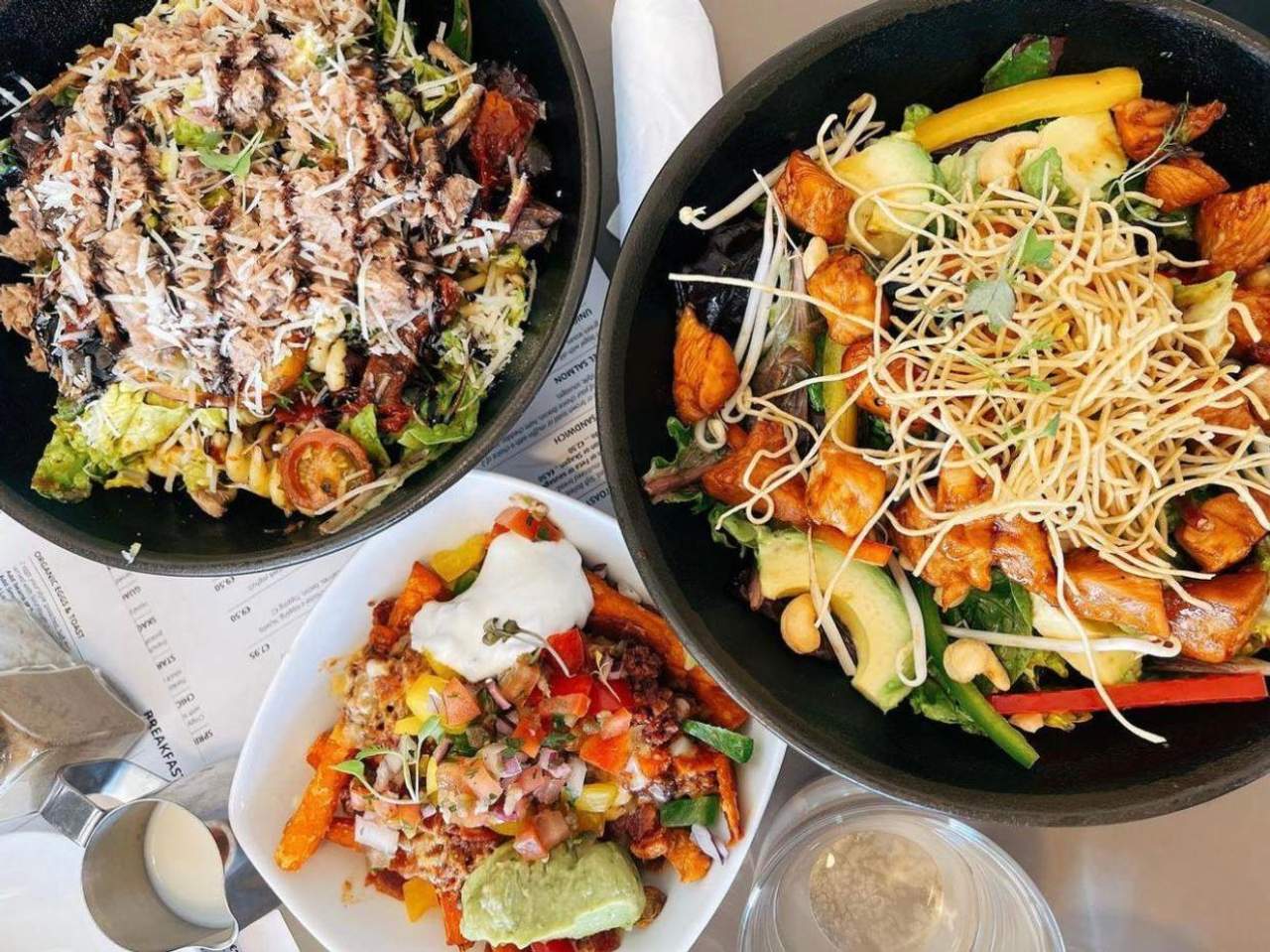 Hojas mixtas, aceitunas negras, tomate, parmesano, cebolla roja, alcaparras & aderezo de tomates secos