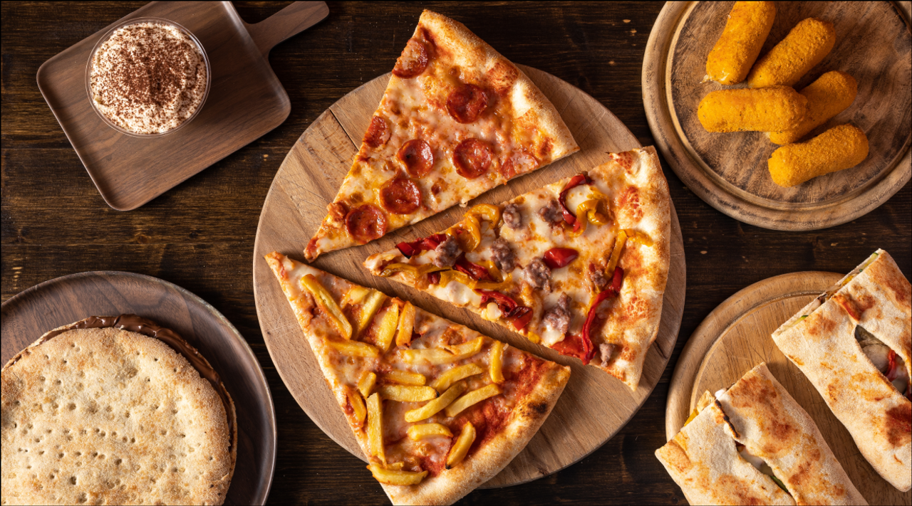 Pizza (28 cm.), durum (1 ud.) y Coca-Cola Sabor Original botella 2L.