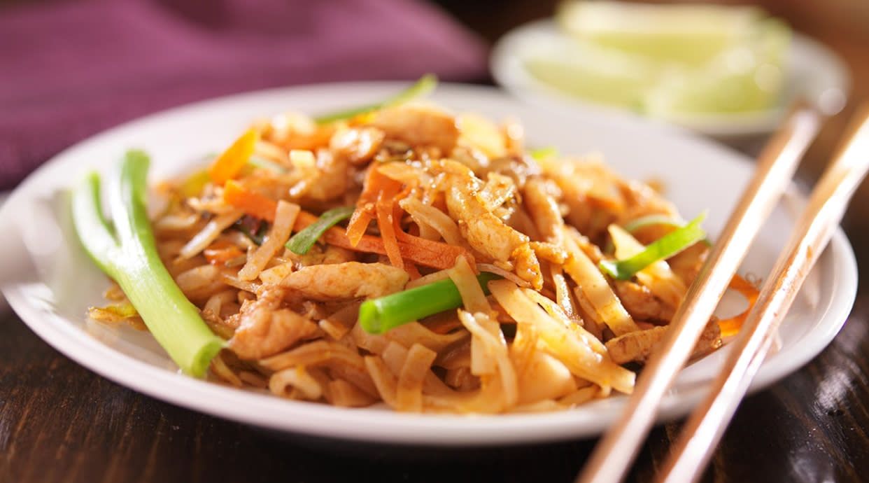 Tallarines salteados con verduras. Contiene alérgenos: gluten.