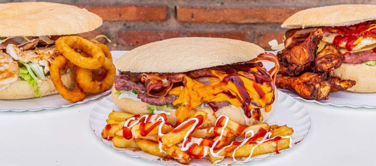 Mayonesa, lechuga, tomate, cebolla, ketchup, mostaza, queso, huevo, bacon, hamburguesa de cerdo