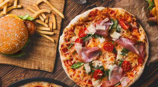Salsa de tomate, jamón de pavo, champiñones, huevo duro, salsa de ajo, queso y orégano