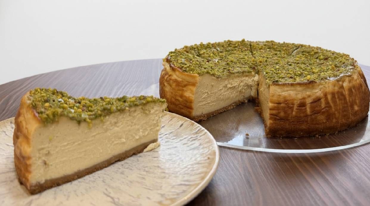 Para los verdaderos amantes del pistacho. Una tarta de queso cremosa infusionada con crema de pistacho puro, sobre una base crujiente. La terminamos con una capa sedosa de praliné de pistacho.